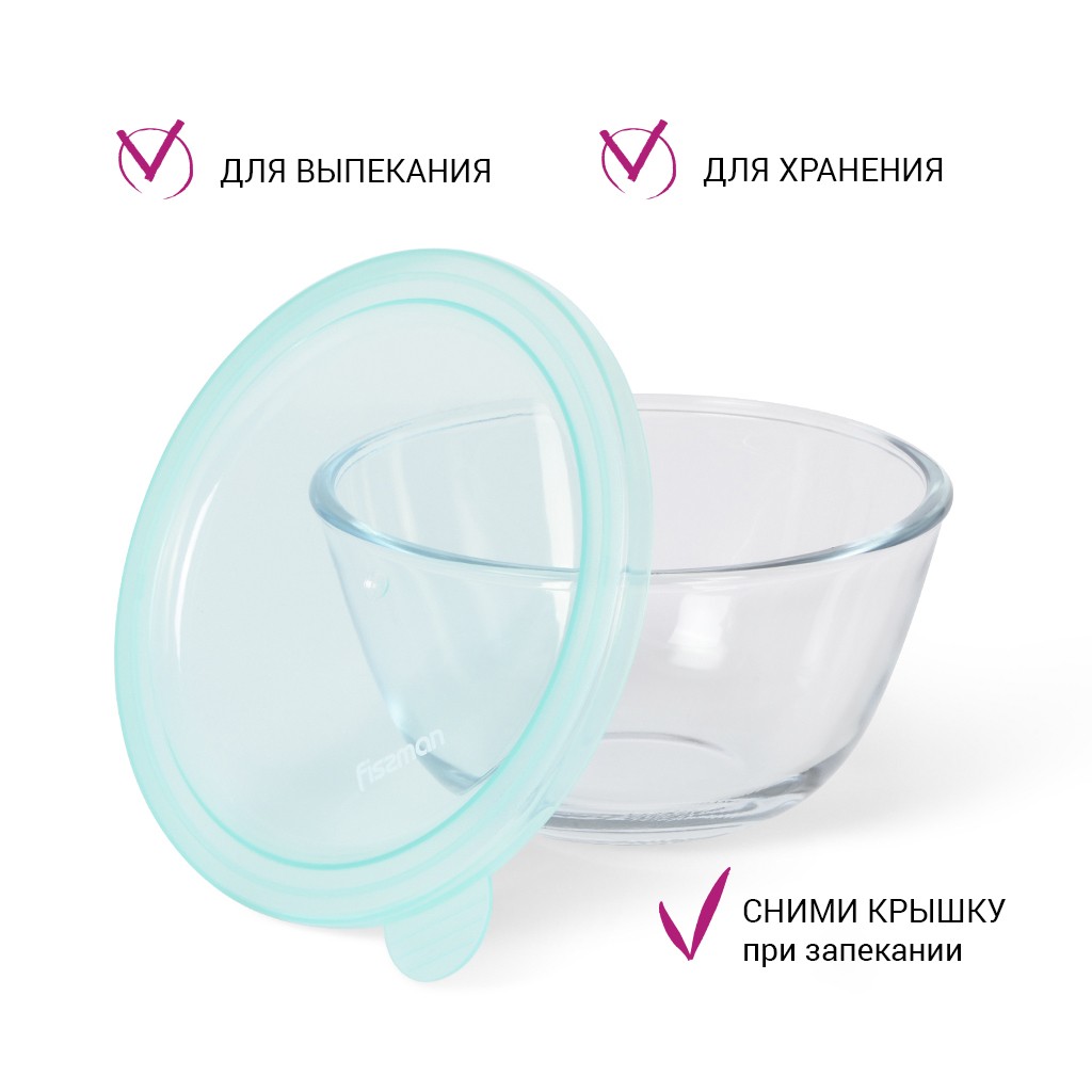 • Миска изготовлена из жаропрочного стекла - можно использовать для запекания в духовом шкафу (без крышки) или в микроволновой печи. Выдерживает нагрев до 400С