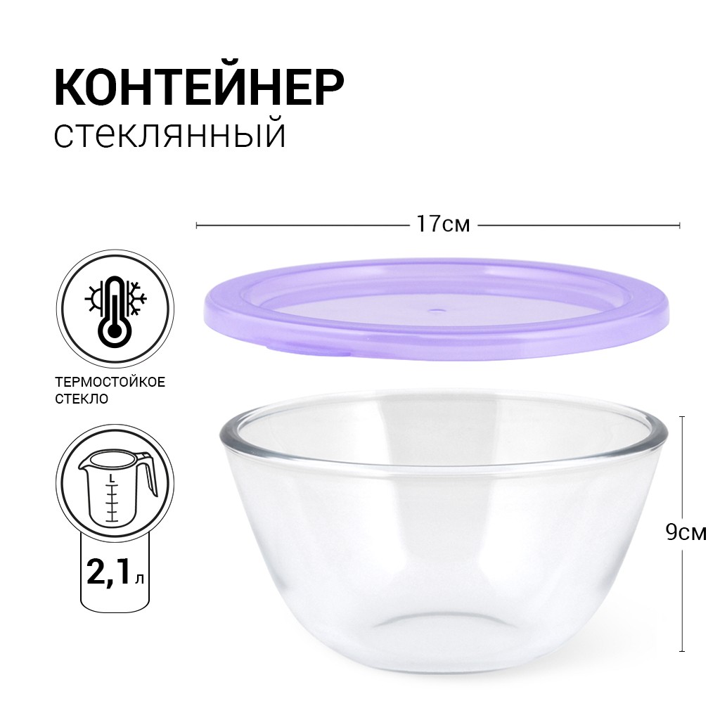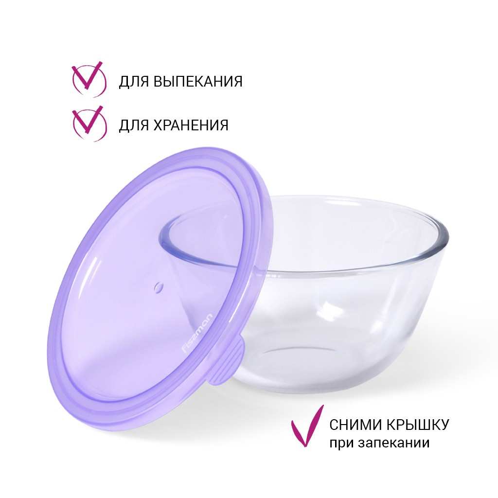 • Миска изготовлена из жаропрочного стекла - можно использовать для запекания в духовом шкафу (без крышки) или в микроволновой печи. Выдерживает нагрев до 400С