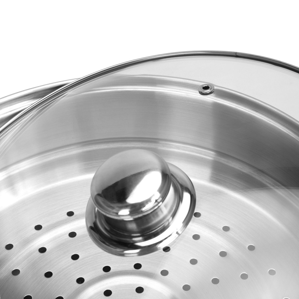 • Прозрачная стеклянная крышка с паровыпуском позволяет наблюдать за готовностью пищи, не открывая посуду, тем самым, исключая попадания брызг на кожу и одежду